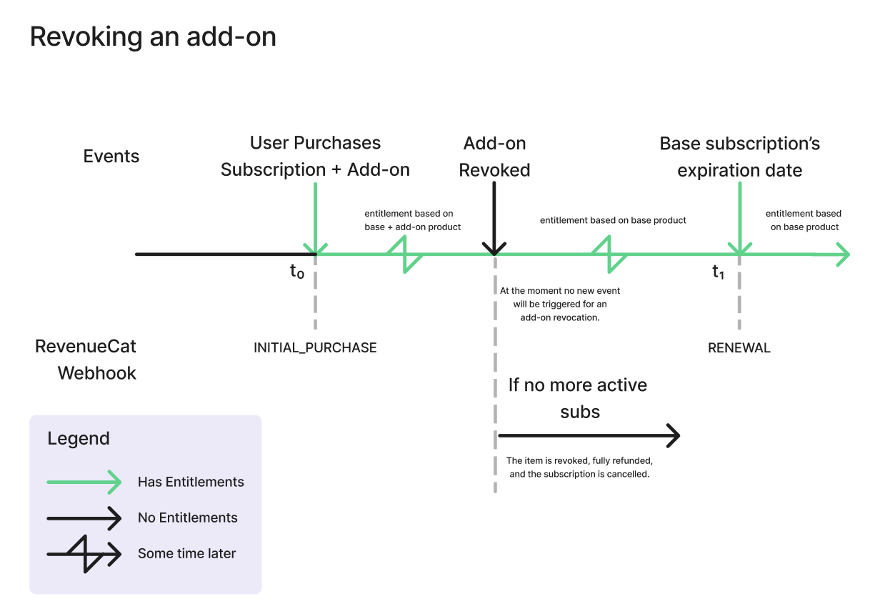 RevenueCat continues to emit the same event types you’re familiar with, no new add-on specific events are introduced. The additional details about the base subscription and its add-ons are carried in the event payload itself.